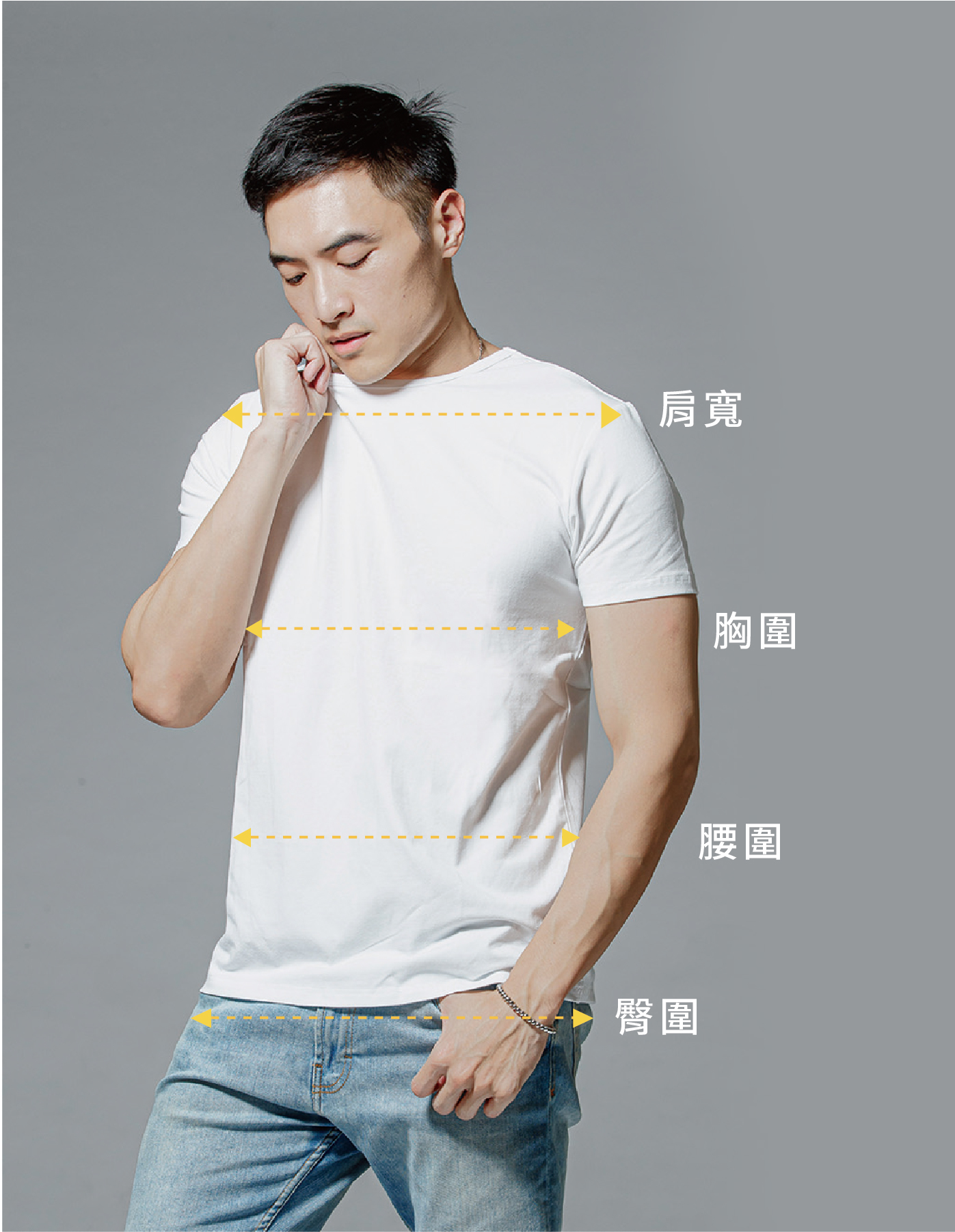 除了胖瘦看體重不準之外,每個人的骨架大小、贅肉位置也都不一樣。同樣身高體重的人,有可能肩膀比較寬、身體比較長,換言之,身高體重只能提供大略的資訊,並不是影響穿衣效果的絕對因素,身體的圍度才是。