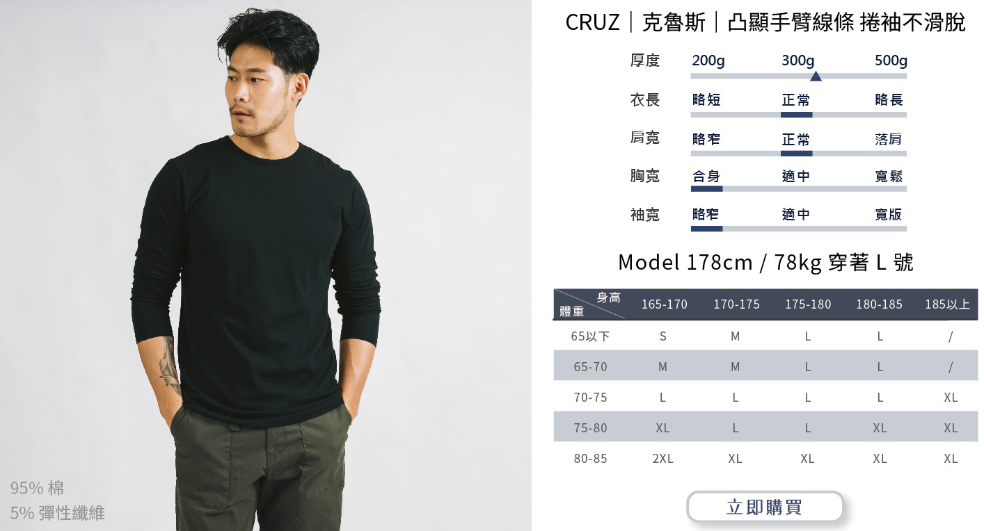 選購時建議依照自身穿搭需求或實際丈量自有T-shirt尺寸而選購。