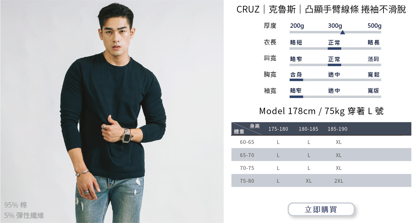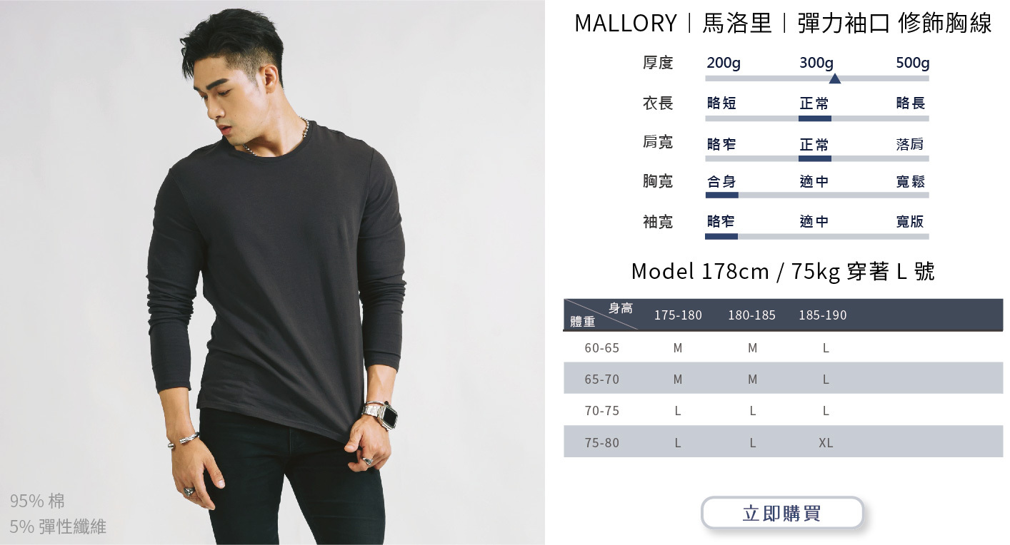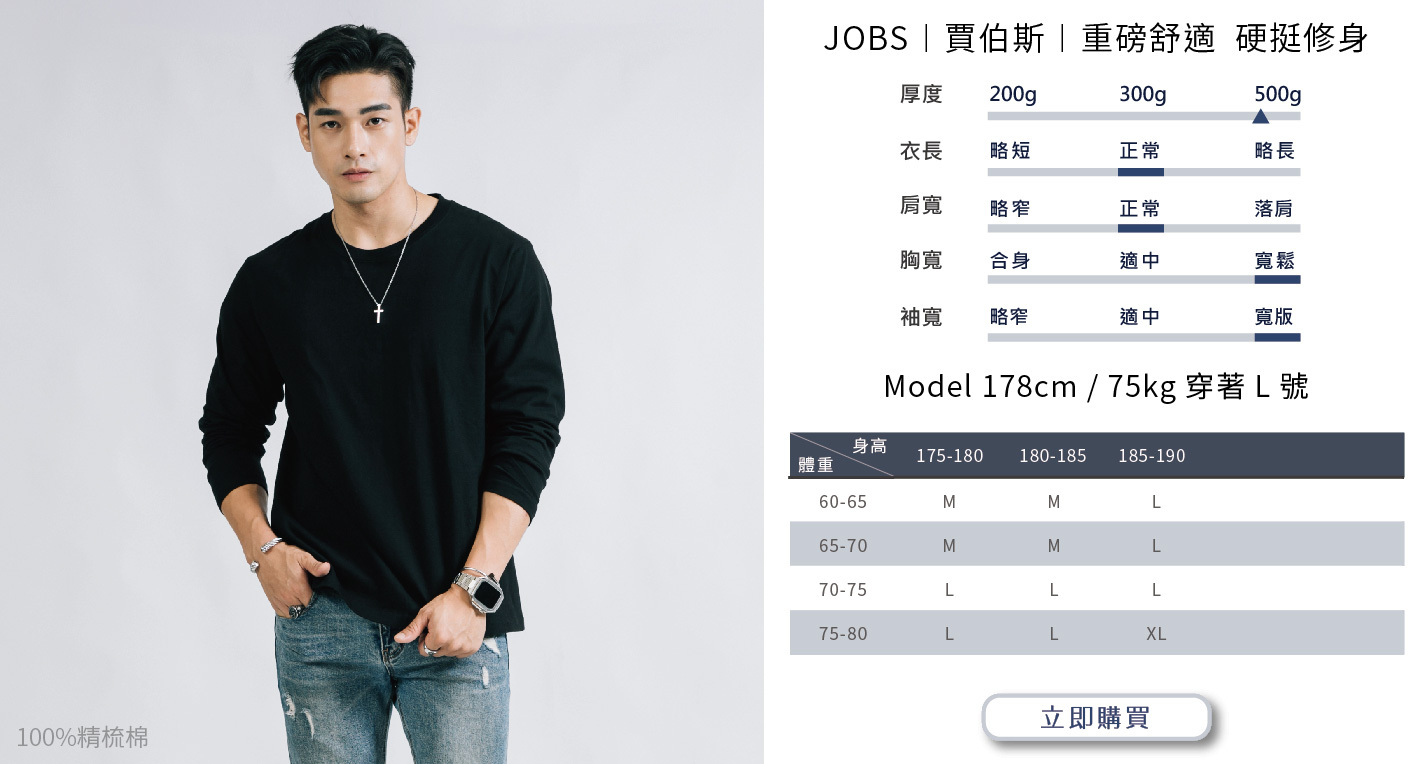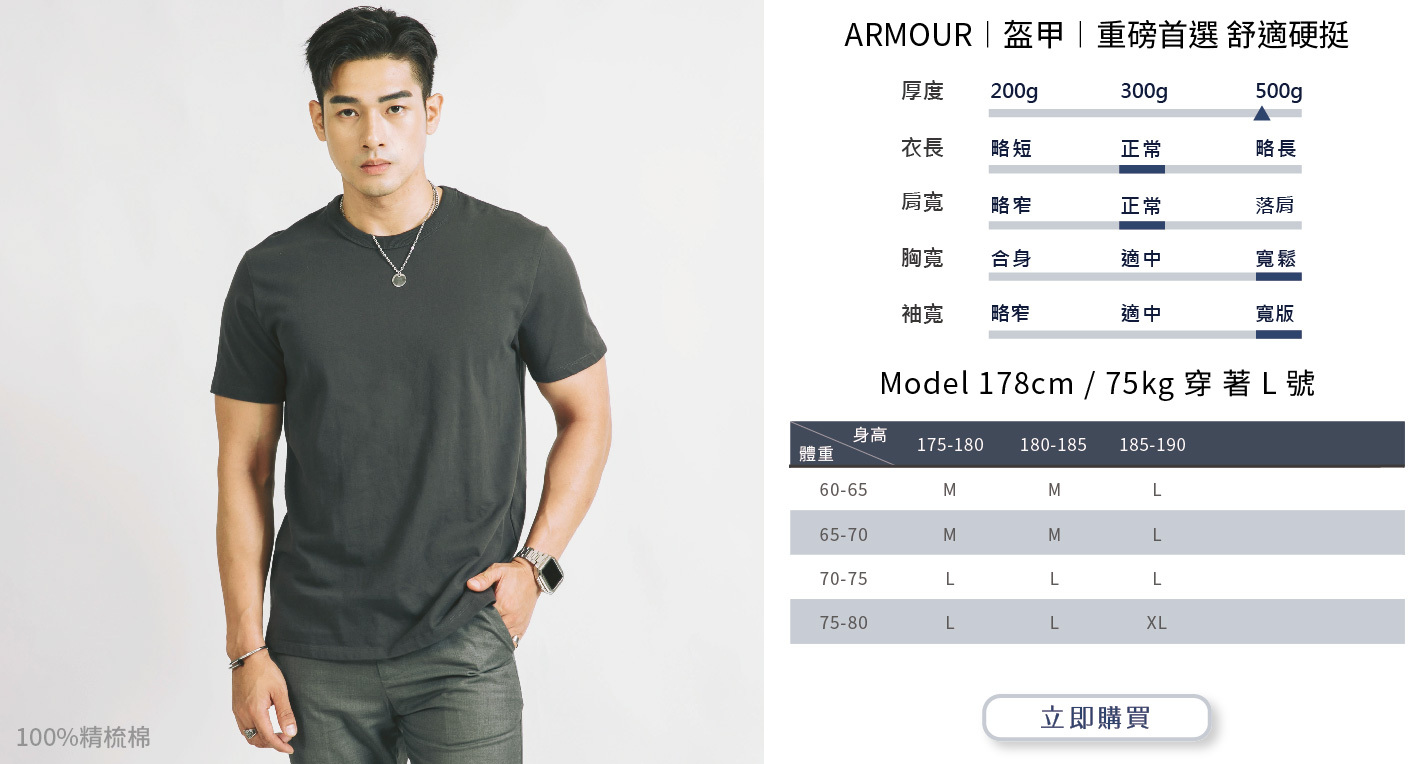 選購時建議依照自身穿搭需求或實際丈量自有T-shirt尺寸而選購。