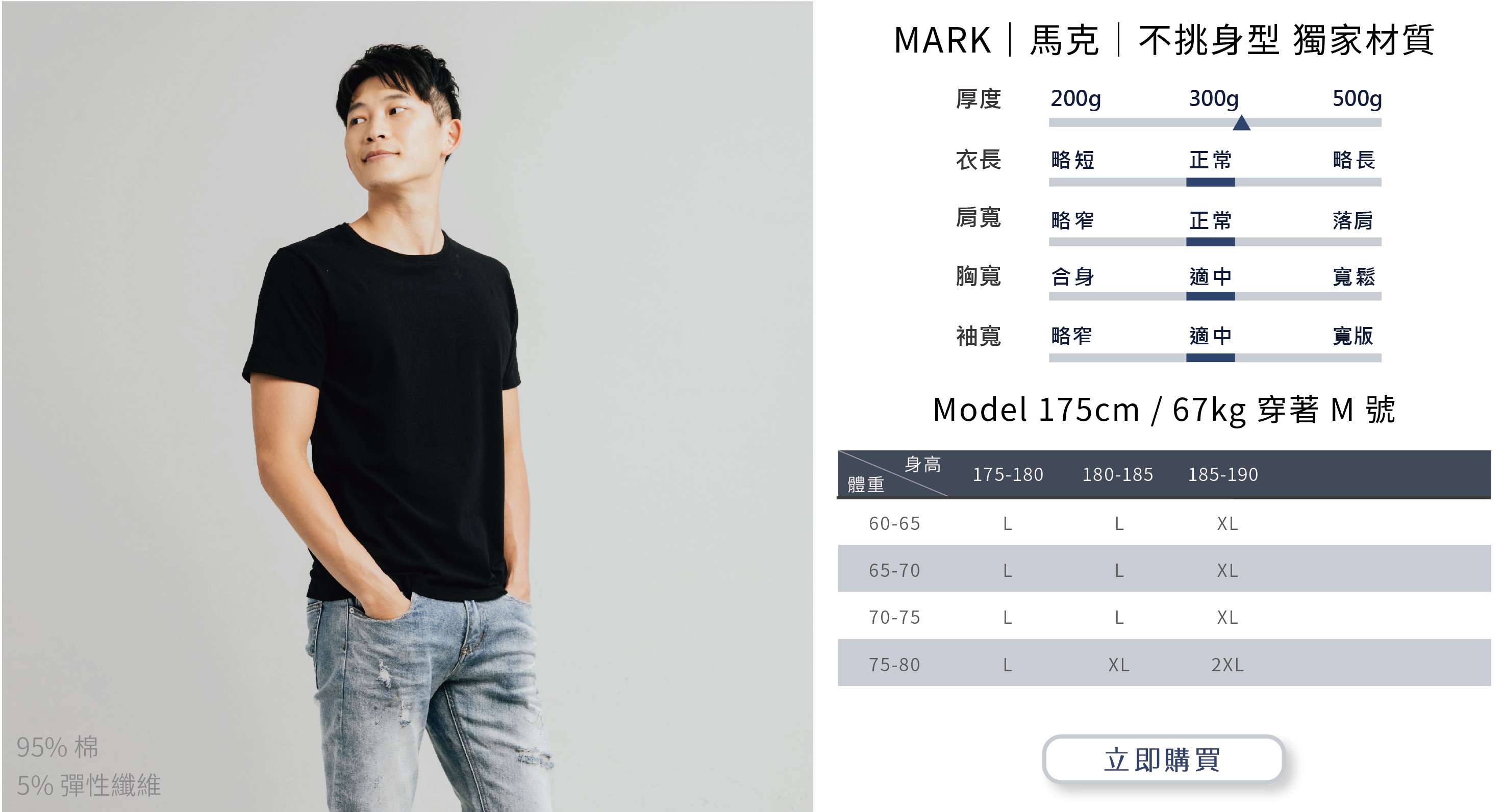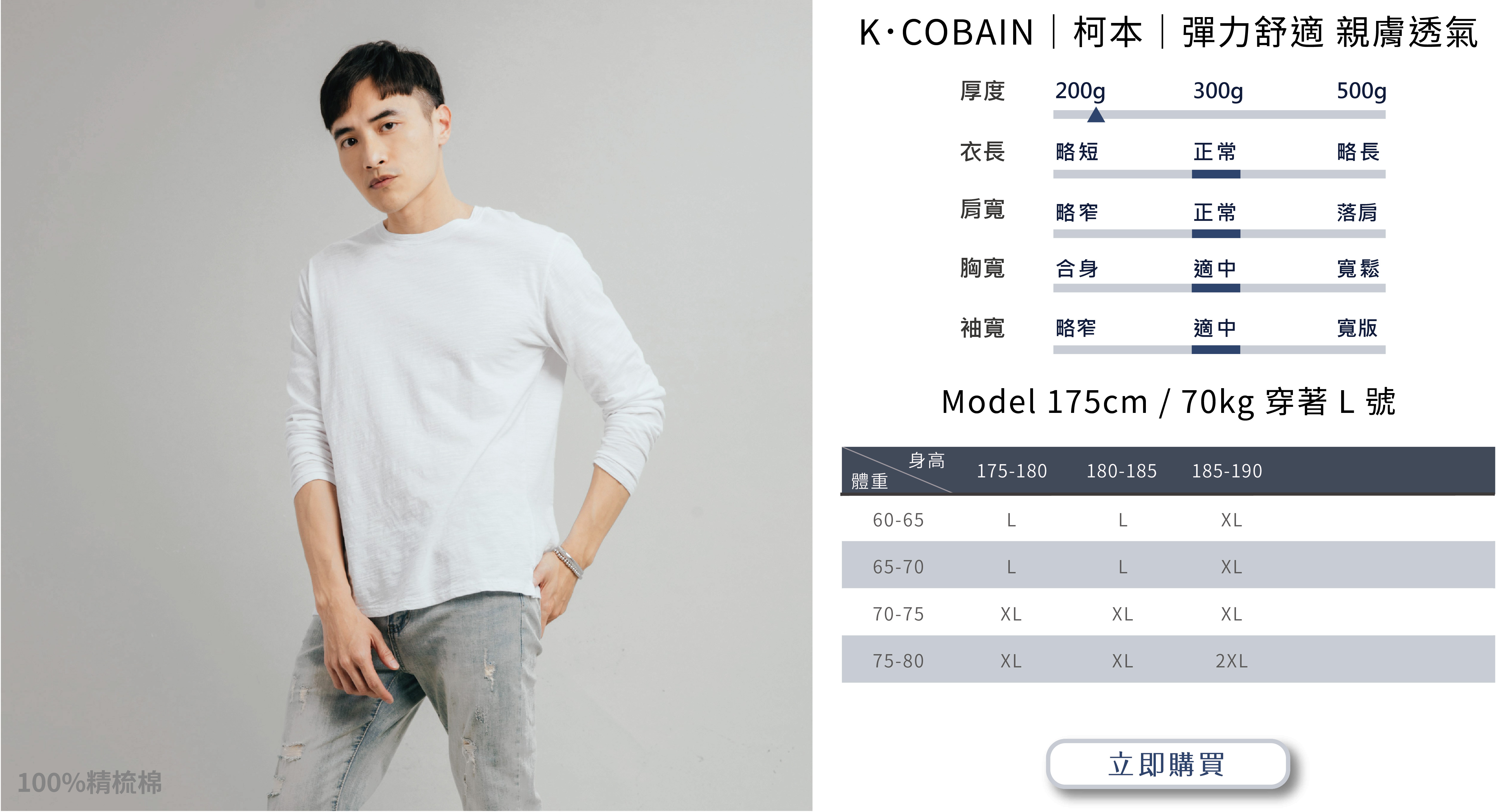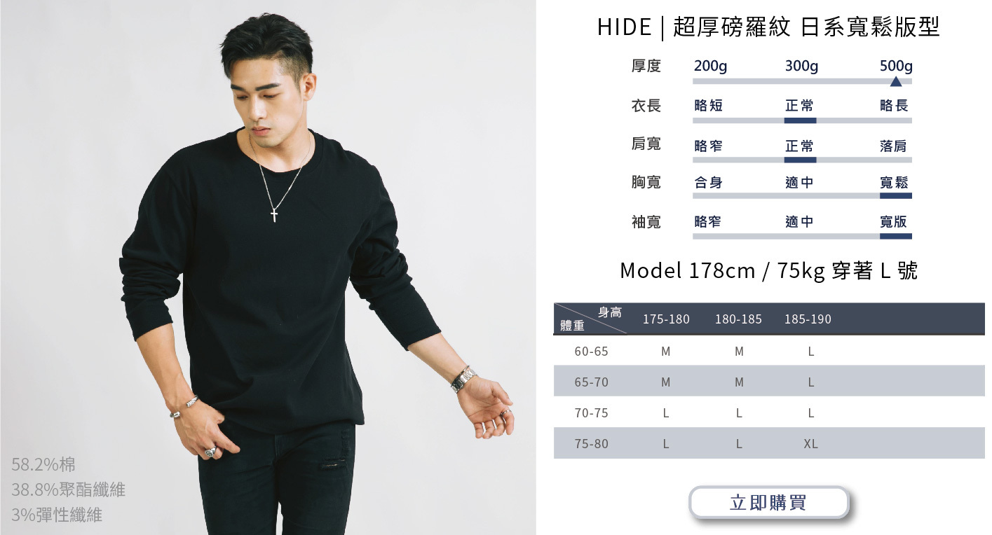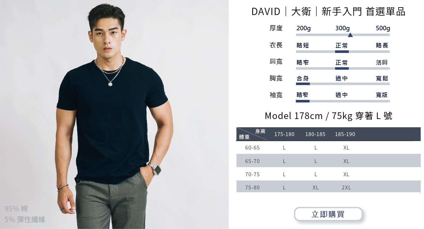 選購時建議依照自身穿搭需求或實際丈量自有T-shirt尺寸而選購。