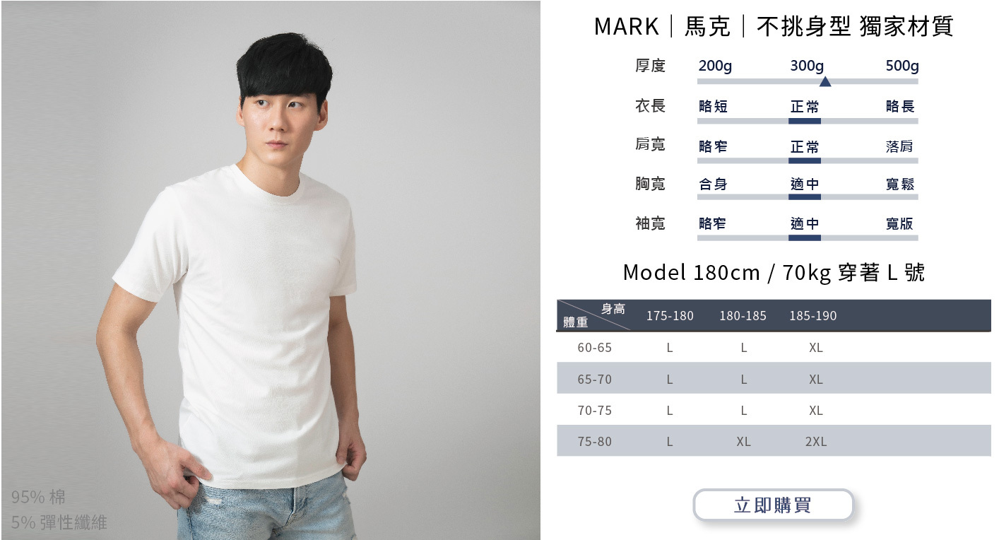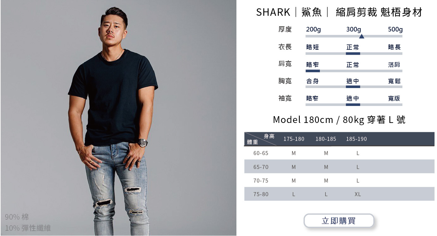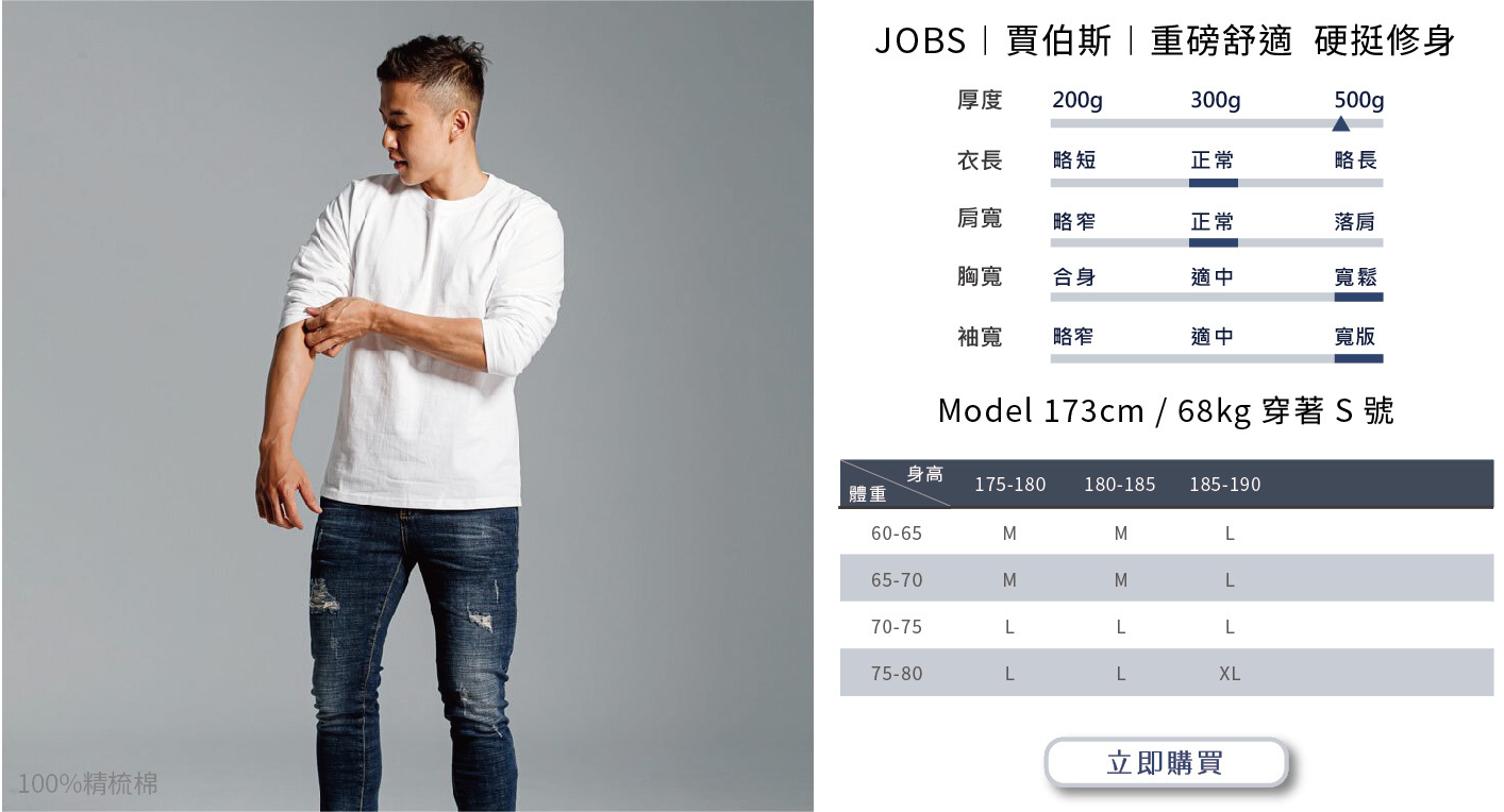 選購時建議依照自身穿搭需求或實際丈量自有T-shirt尺寸而選購。