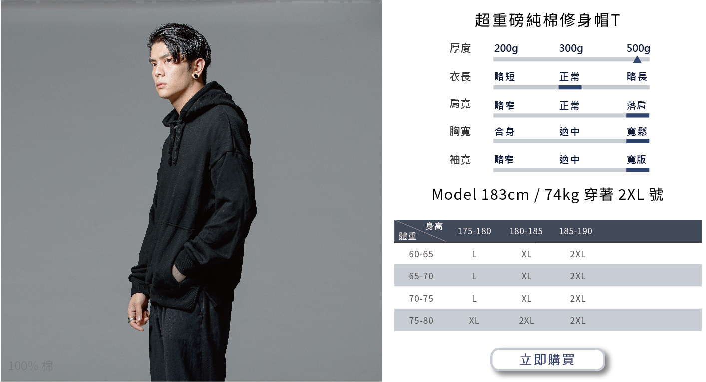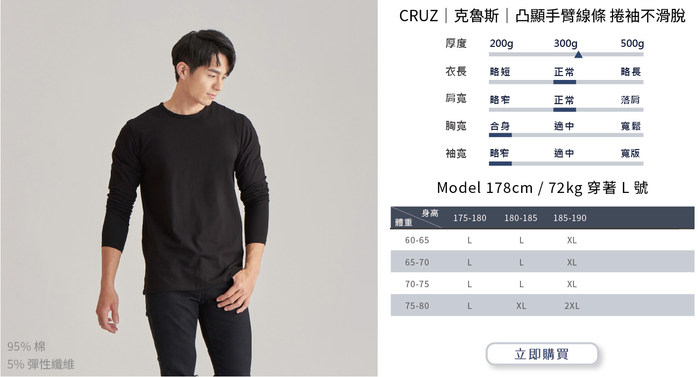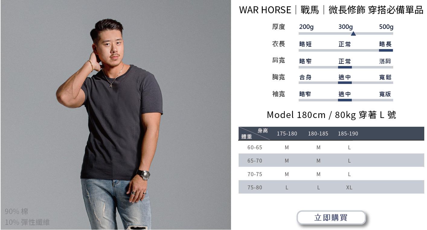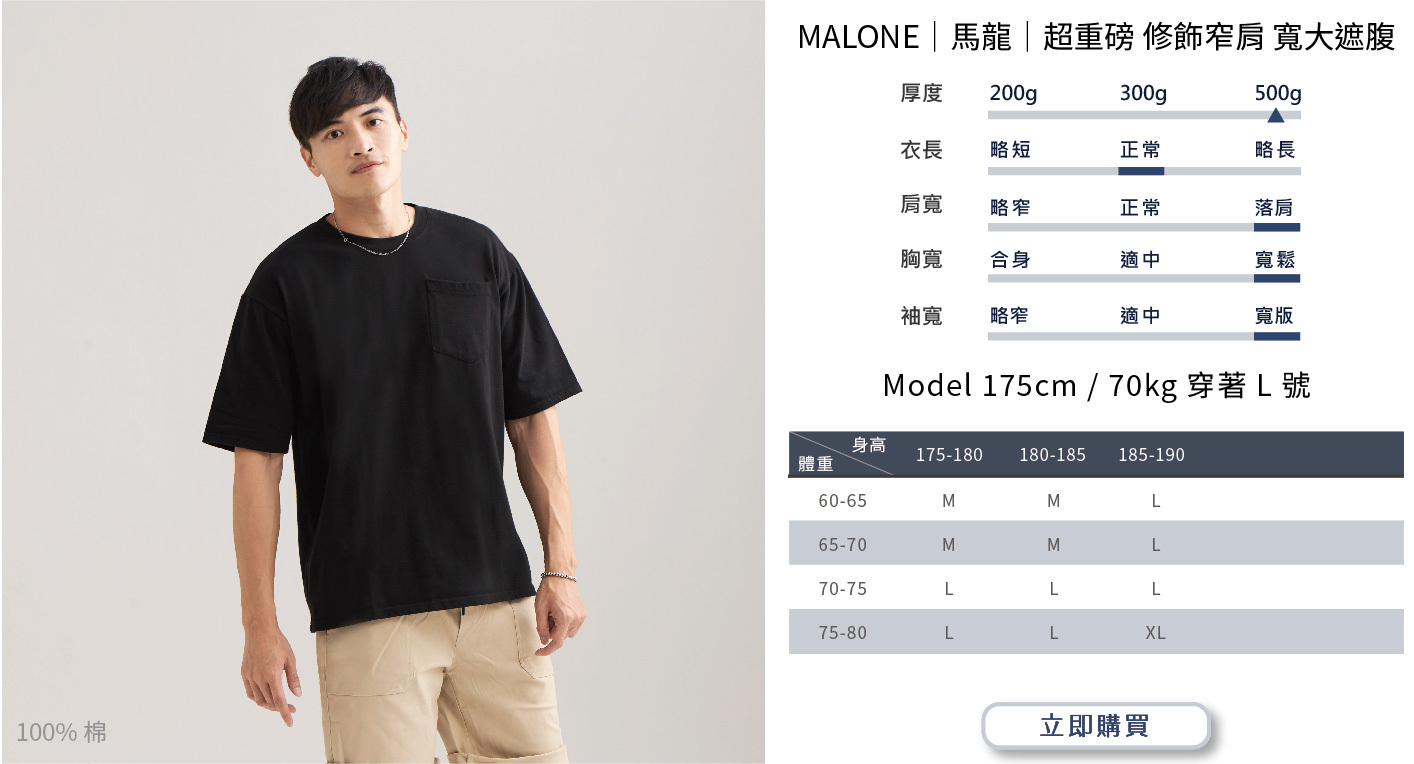 選購時建議依照自身穿搭需求或實際丈量自有T-shirt尺寸而選購。