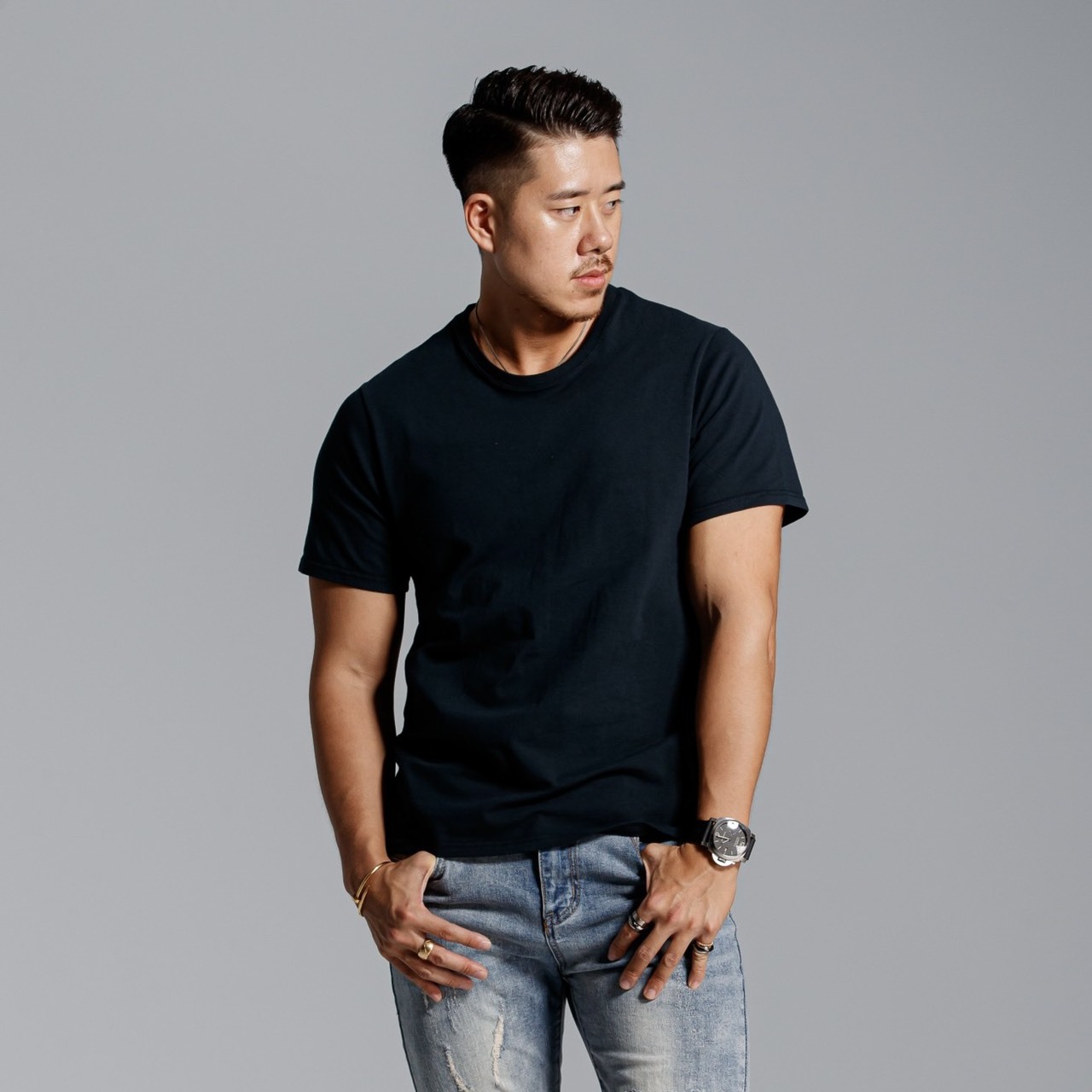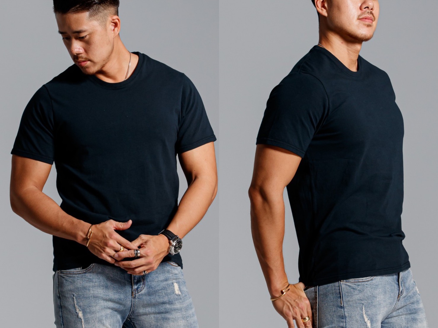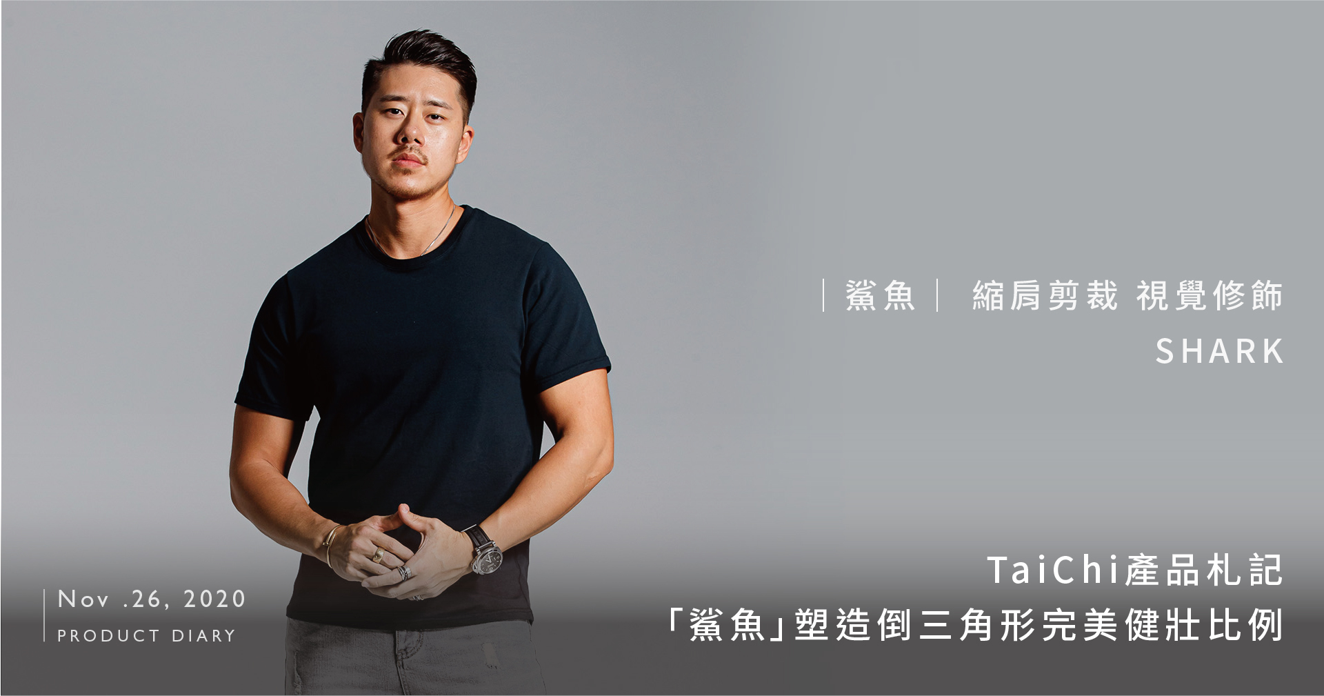 反之,若是壯碩、手臂粗壯的人穿著「鯊魚」,則能放大服裝的特色,以及身材的優點,完美呈現苦練已久的背肌、臂肌以及肩部線條,強化倒三角形的輪廓,使你看起來更為魁梧。