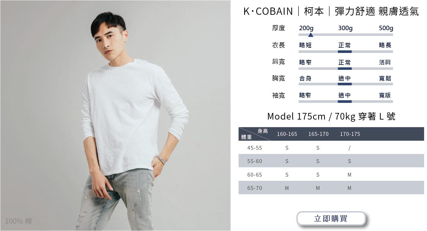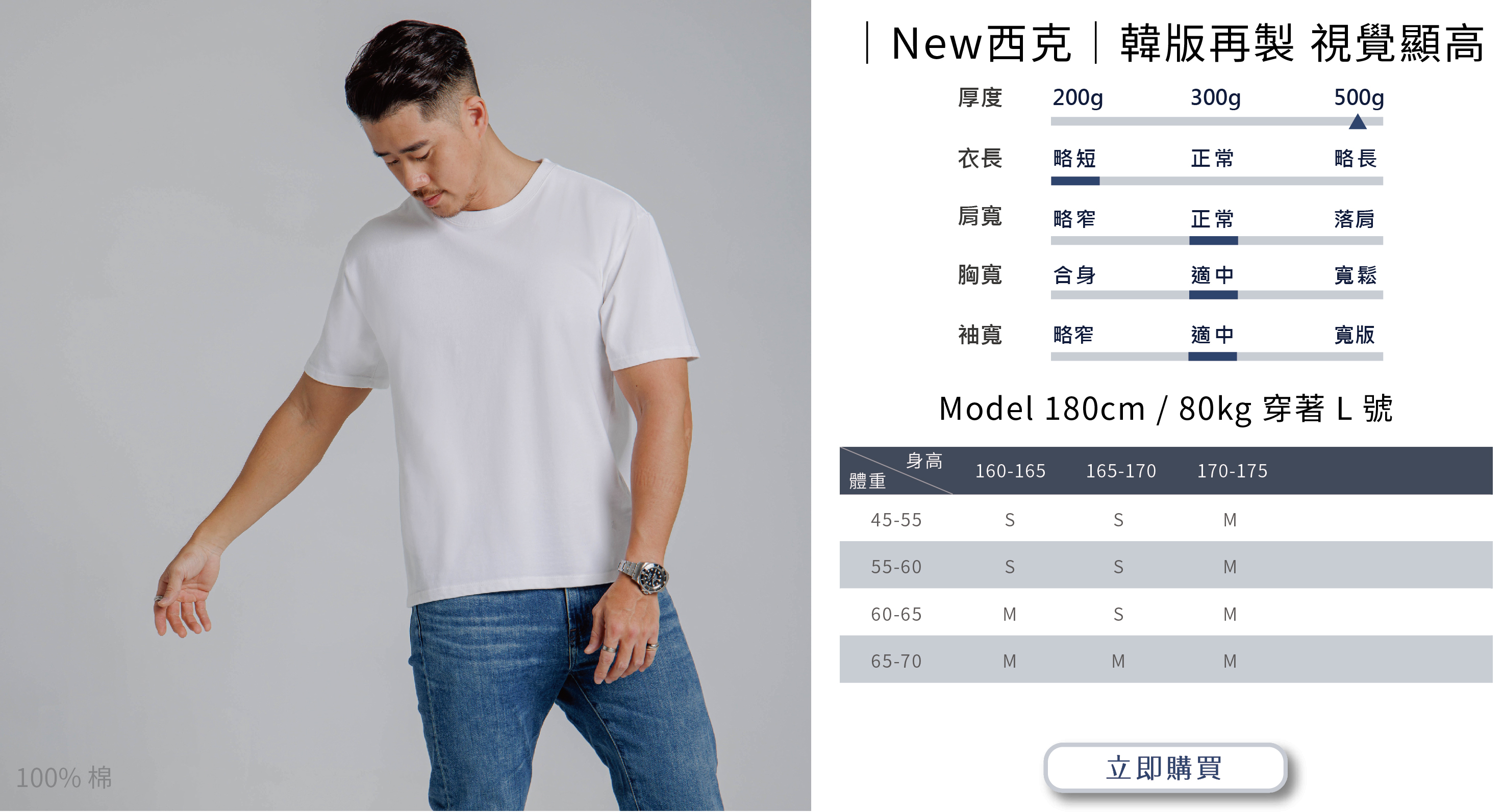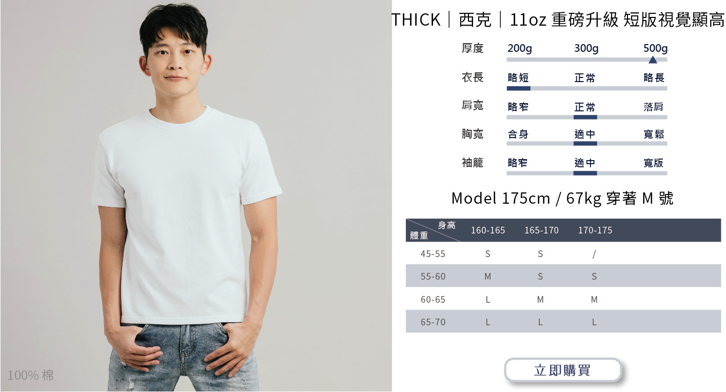 選購時建議依照自身穿搭需求或實際丈量自有T-shirt尺寸而選購。