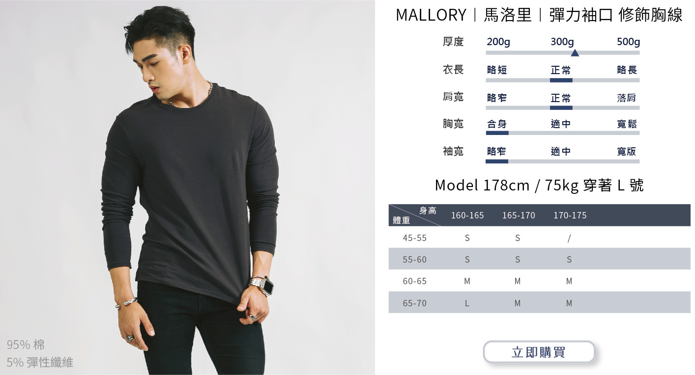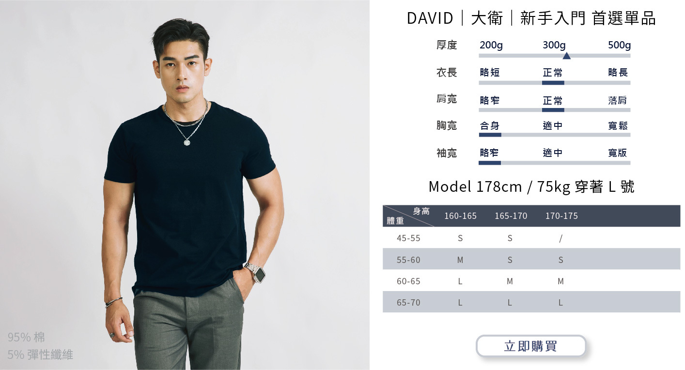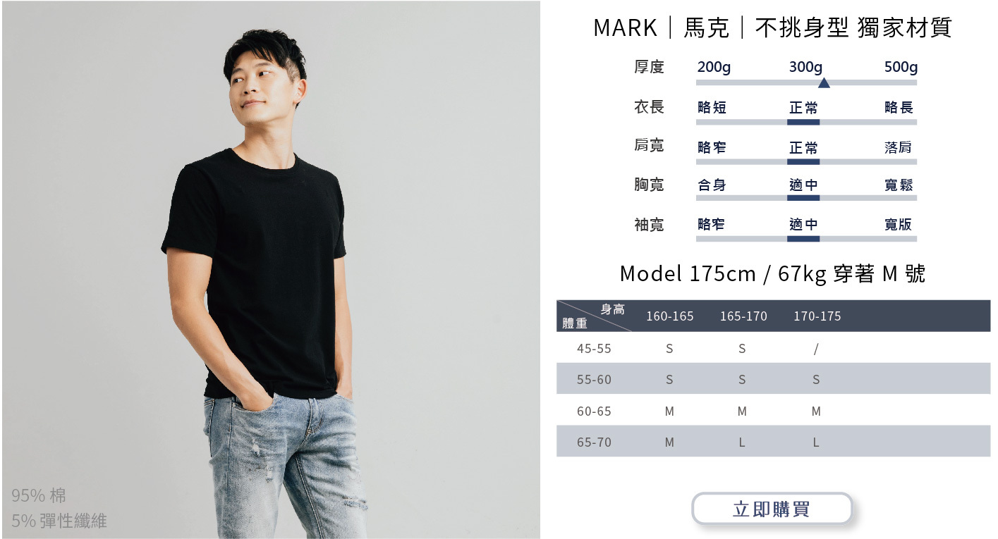 選購時建議依照自身穿搭需求或實際丈量自有T-shirt尺寸而選購。