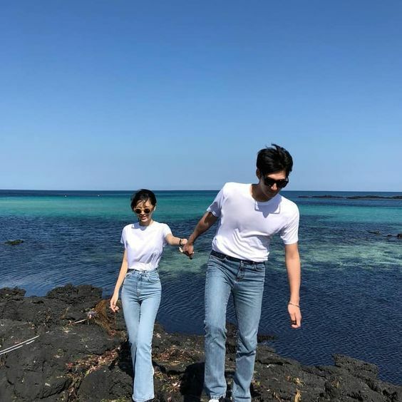 最簡單的情侶裝,當然就是直接穿同款同色,不過這種情侶裝方式,最好穿越樸素越好,像是素T就是最好的選擇,因為如果衣服的花樣太多、顏色太鮮豔,容易給人太幼稚的感覺。