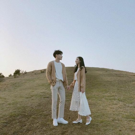 另一種能在創造親密感的同時,保有個人特色的方法,就是上衣相同,但下身自由發揮。有些情侶中的女生,下身會搭配裙子,強化兩人的差異性,並營造出「系列感」,讓外人一眼看出你們是一國的,卻完全不用犧牲時尚,甚至更能凸顯雙方對於時尚的獨特見解,是非常值得一試的穿搭方法!