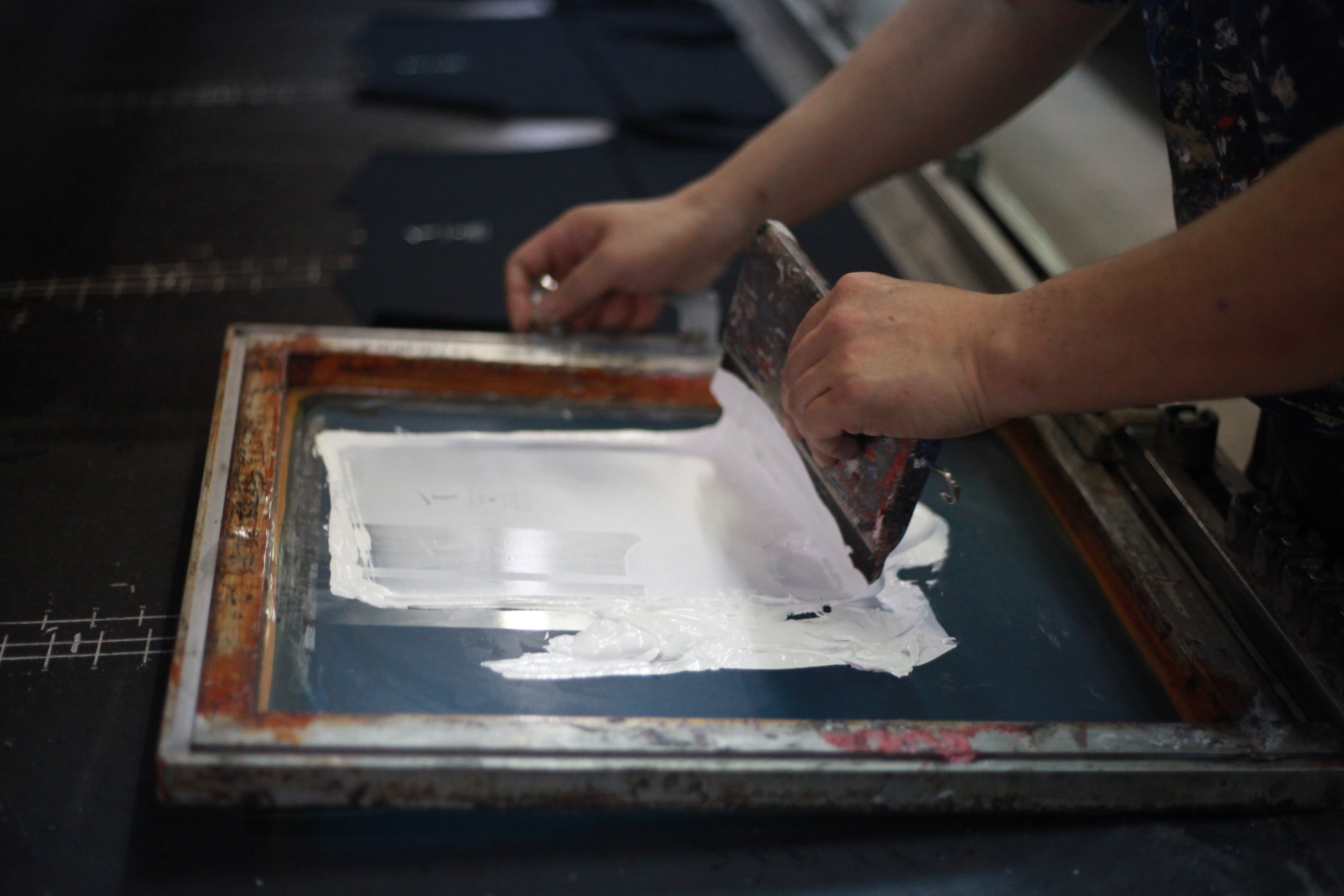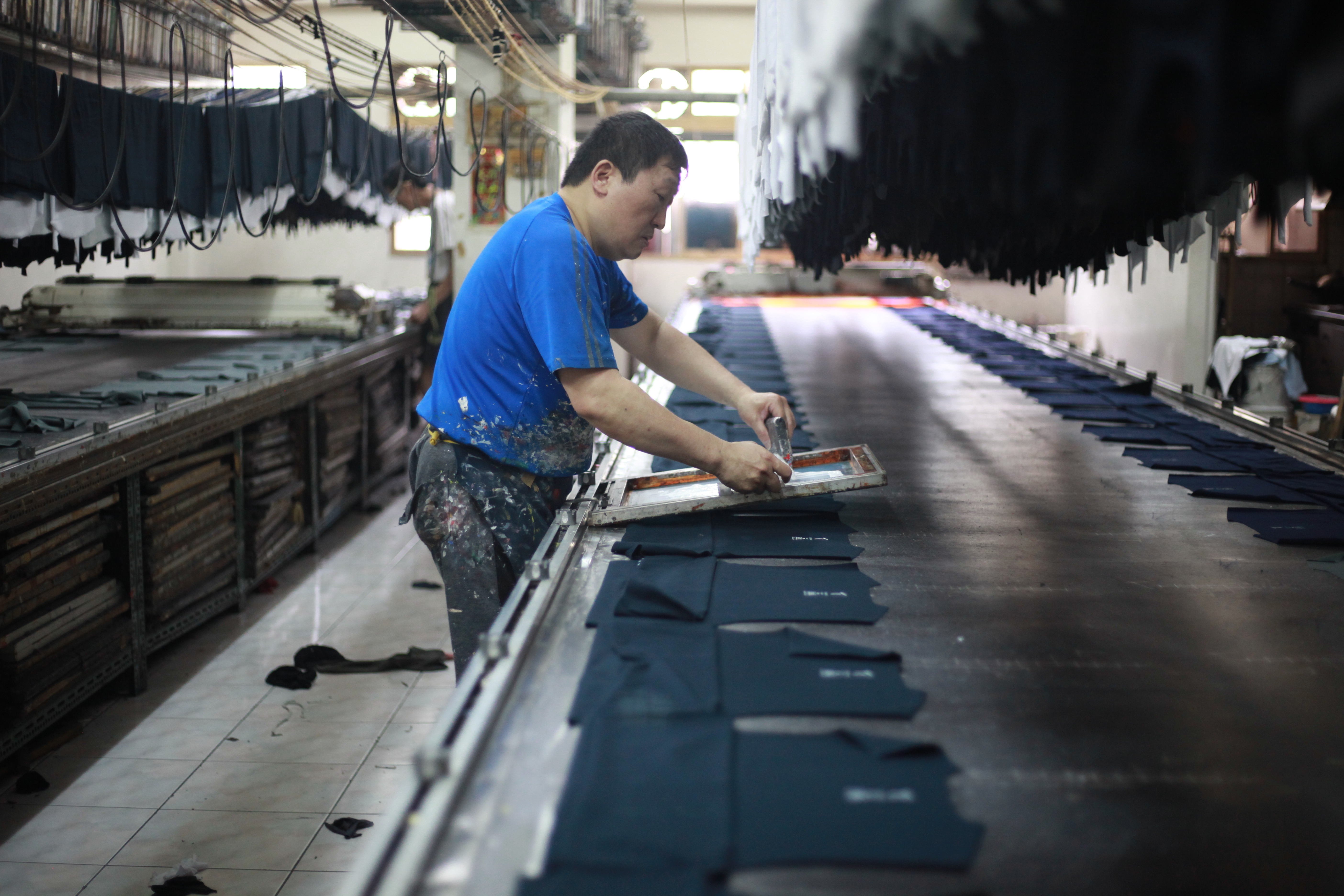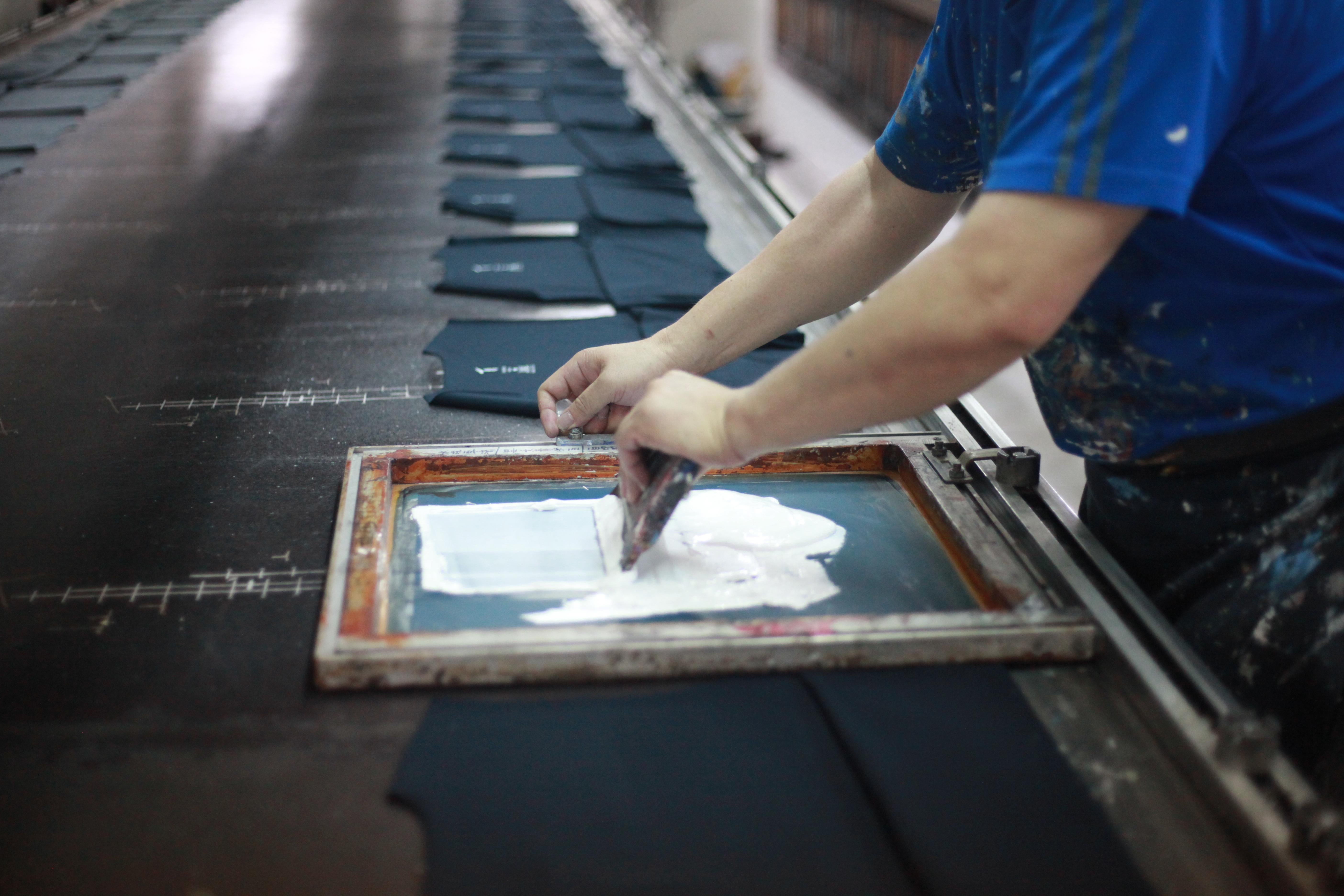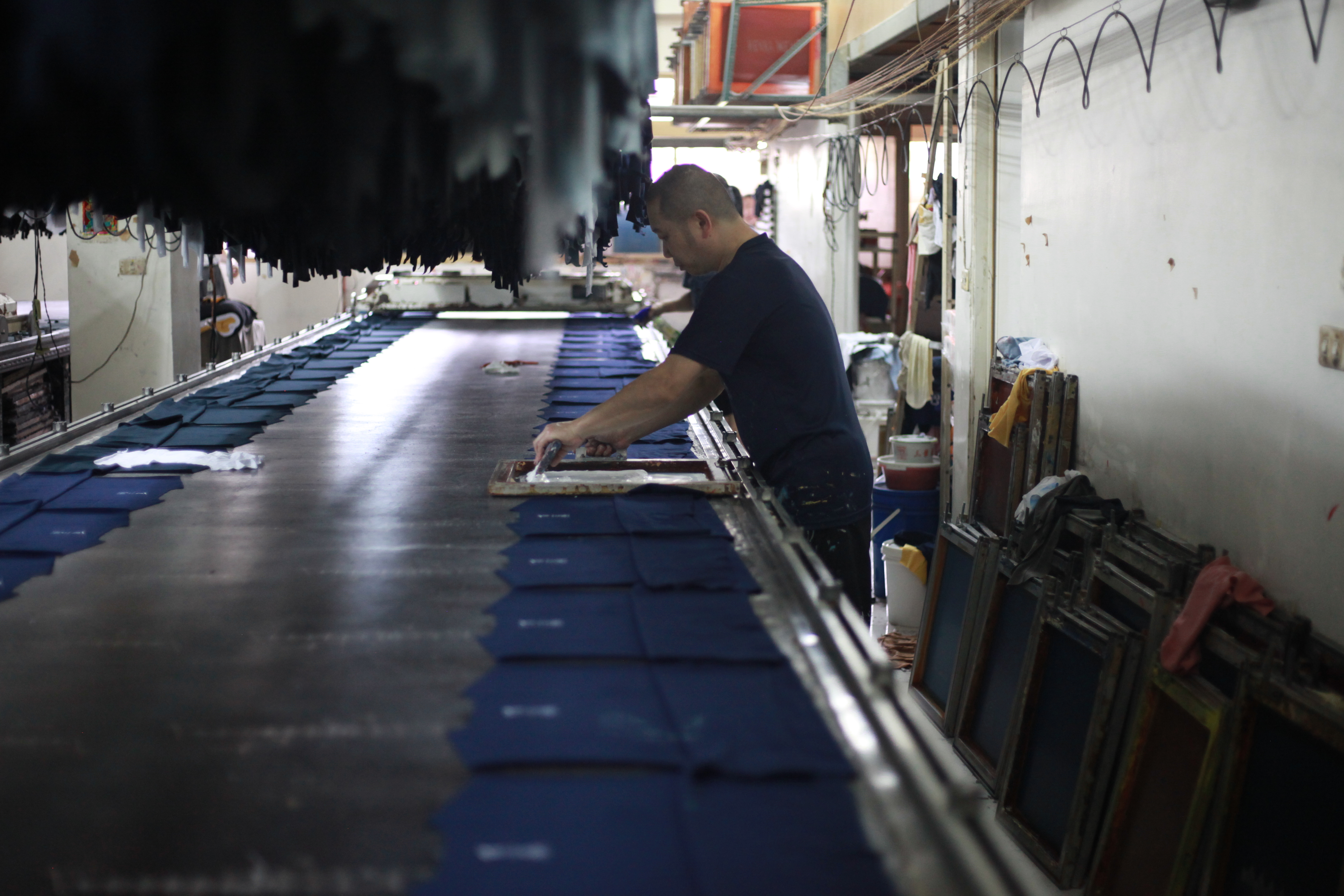 只是這種工法,儘管成效很好,但因為繁複、耗時,成為漸漸凋零的工藝。因為不同版型、尺寸都要使用不同的網格,加上需要不斷攤平、烘乾、印製才能固色,都要靠老師傅一件一件手工印製才能完成。