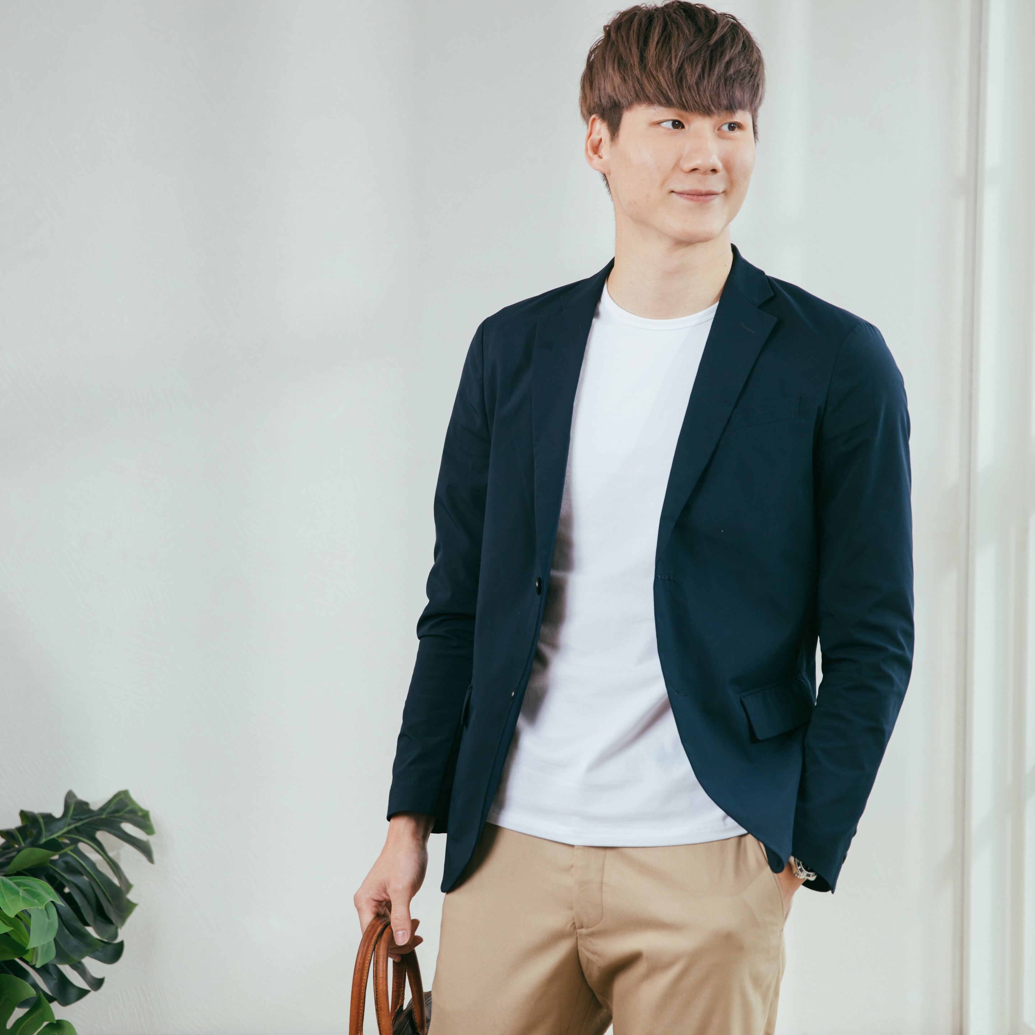 而由於「Smart Casual」畢竟不是真正的專業造型,所以西裝外套的材質,盡量不要挑選像是絲等光澤感太強的布料,建議選擇棉、麻等休閒感較強的西裝布料。