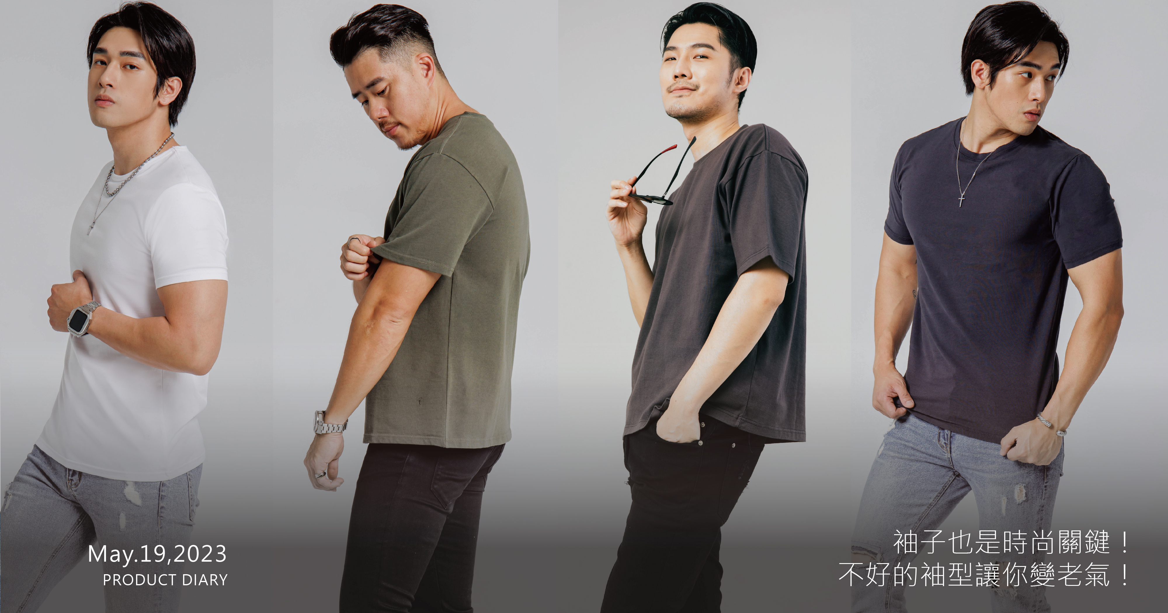 另一個挑選的方式,是看袖子的形狀。一般而言,穿上素T並自然放鬆手臂後,袖子應該要呈現直筒狀,且略和手臂保持一點空間,即便是oversize風格的素T,也該是如此。若袖子出現顯著的三角形多於布料,就代表太大了,看起來就像是穿了過時的衣服,建議更換尺寸或版型。