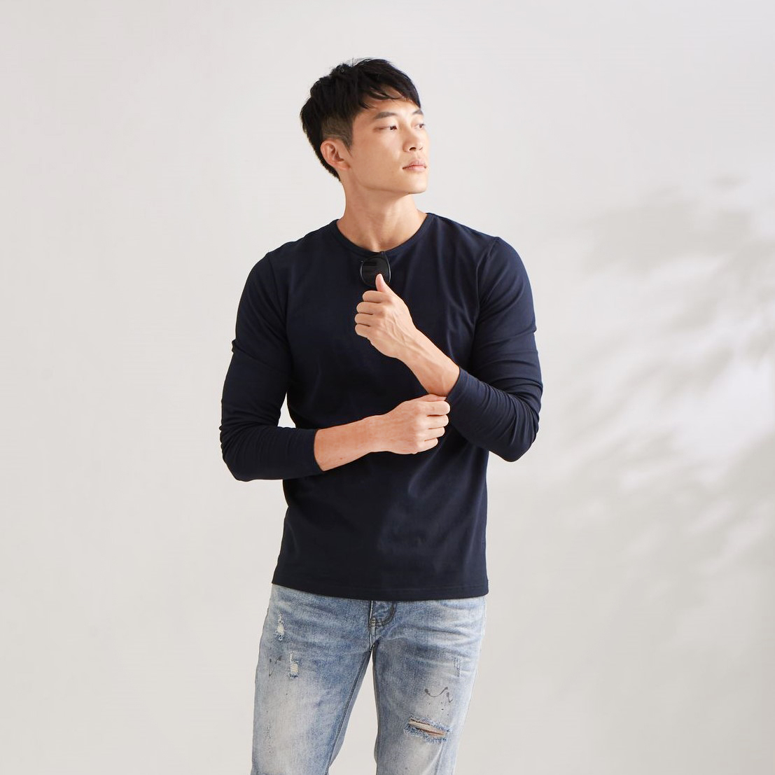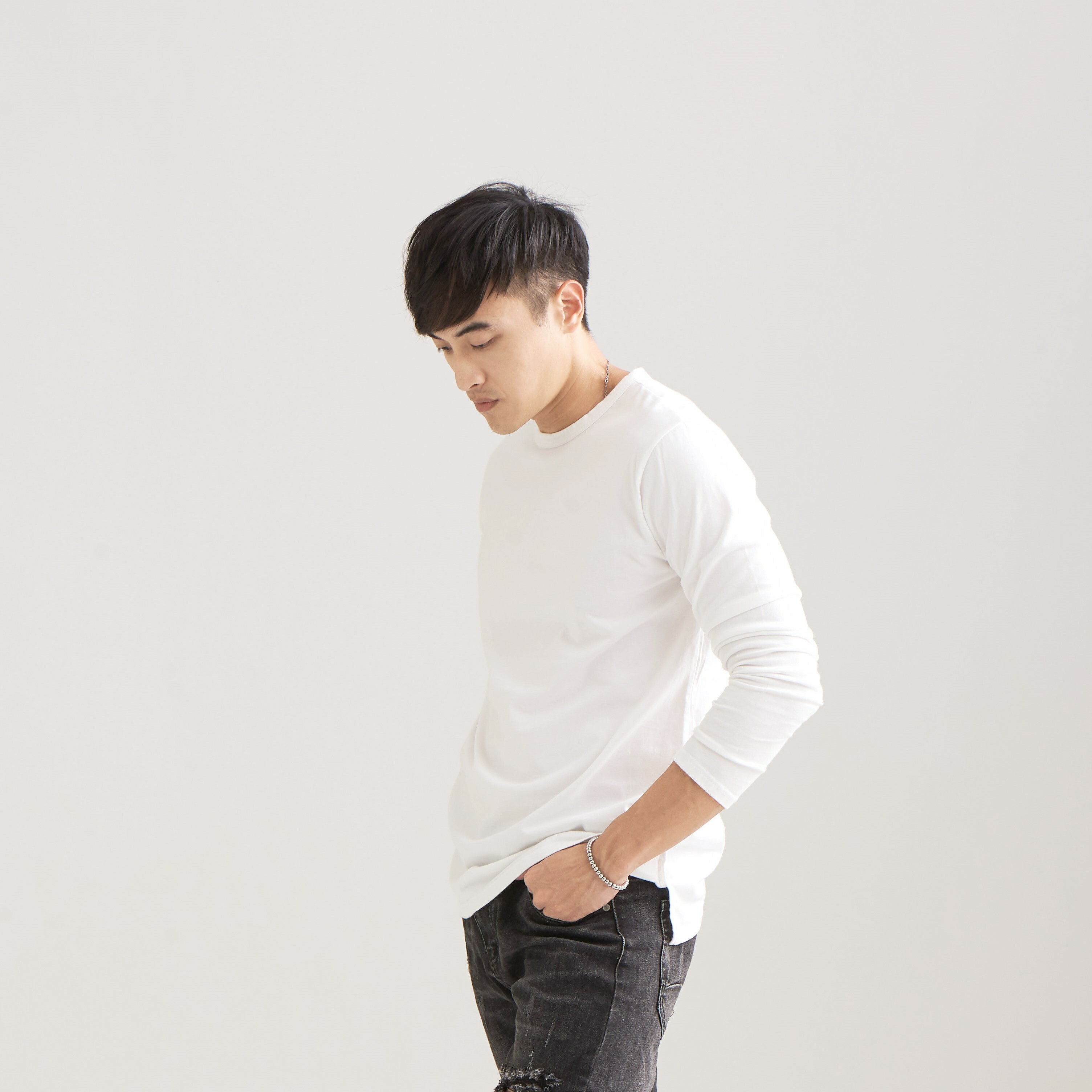 材質如果是白色,摸起來又滑又軟,就會令人聯想到內衣,既然如此,那就可以反其道而行,直接選擇不可能誤會的材質,比如有豐富紋理的竹節棉長袖素T,或是厚實挺拔的超重磅素T,如此一來,即便選擇白色,也很難被誤認成穿內衣在大街上亂晃。