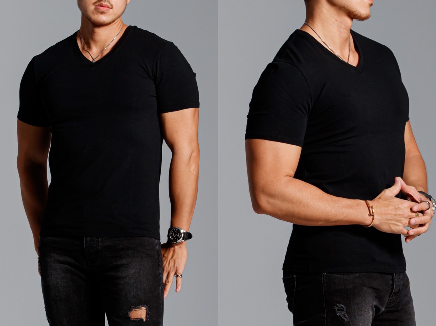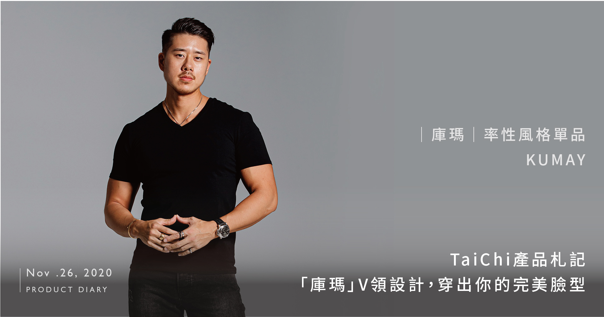 絕大多數的素T都是圓領的,但並非每個人都適合穿圓領的款式。所以TaiChi推出了全館唯一的V領版型「庫瑪」,讓臉部線條圓潤、粗獷或是頸部不修長的人,能藉此穿出完美臉型。