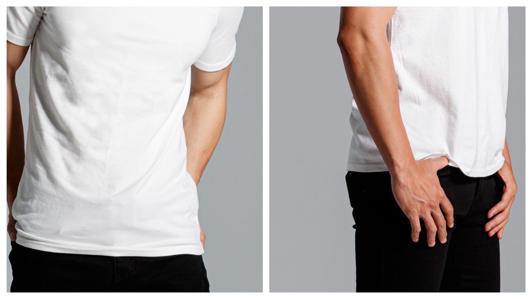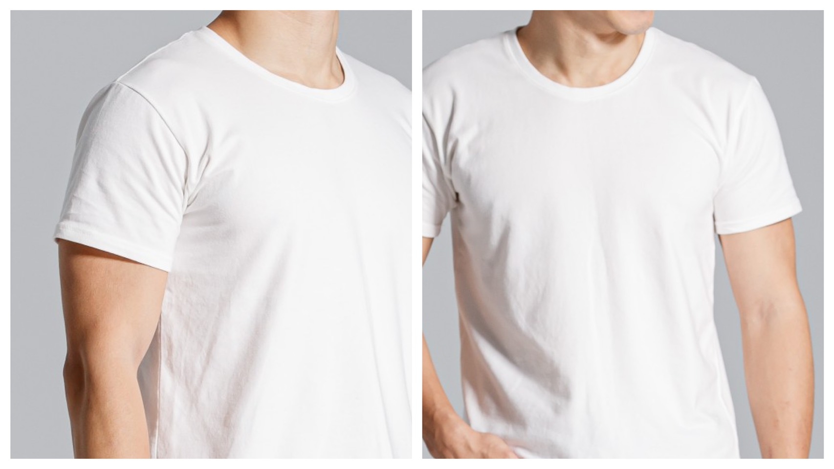 除非你有刻意營造獨特的穿著風格,否則一件合身的短袖T恤,袖長應該要落在手臂的中間附近,袖寬最好留有1、2公分的空隙,方便活動與透氣。不然感覺會非常像內衣,而且看起來也太緊、不自然。