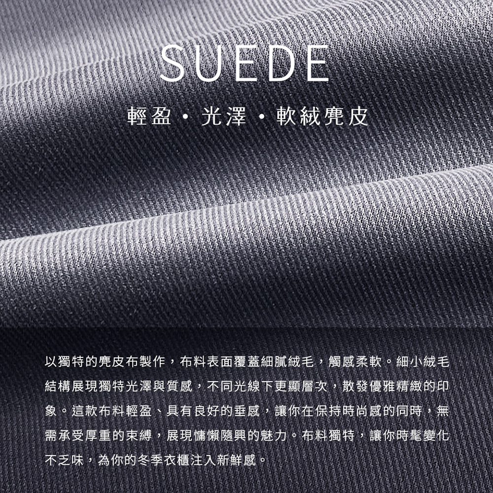 獨家麂皮手感材質,舒適柔軟觸感,與個性時尚的完美結合