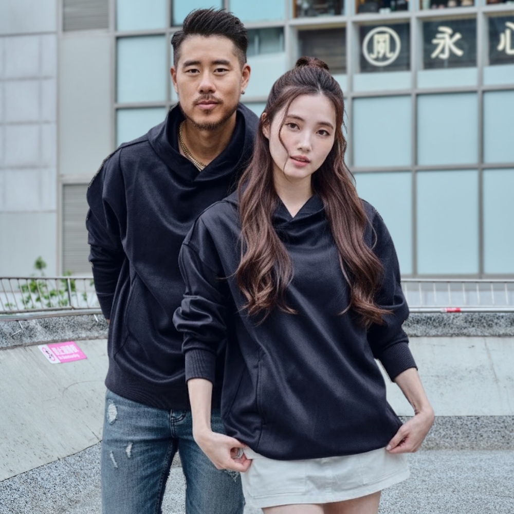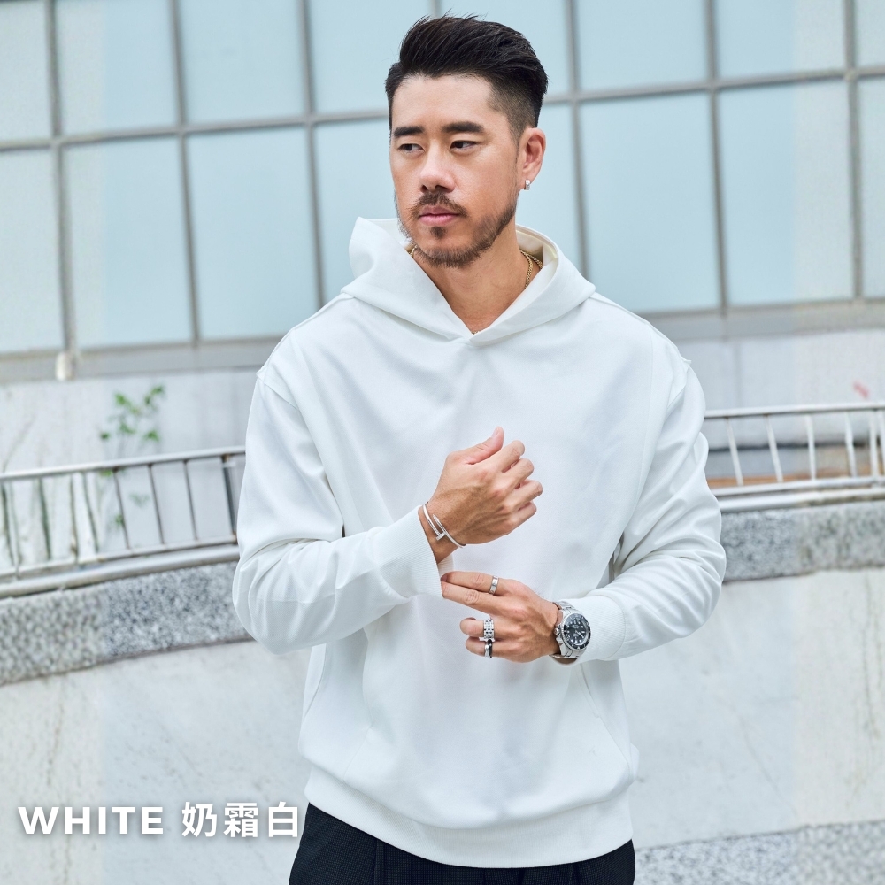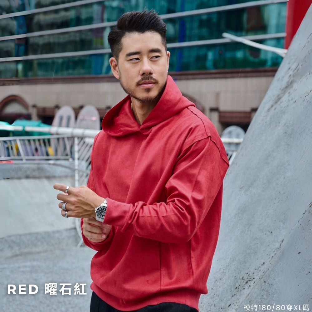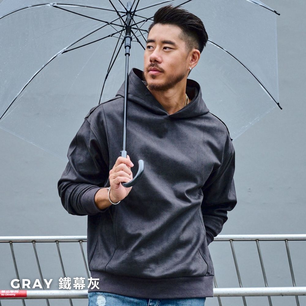 獨家麂皮絨材質,增添帽T新風貌;寬鬆挺立版型,適合所有身形